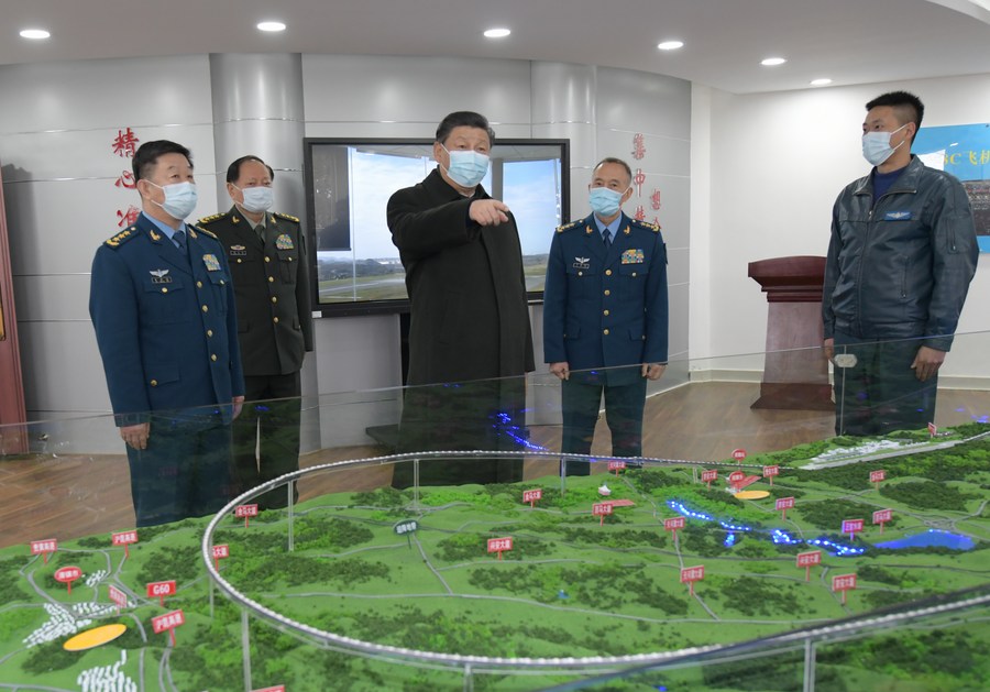Chinese President Xi Jinping, also general secretary of the Communist Party of China (CPC) Central Committee and chairman of the Central Military Commission (CMC), learns about the education and training of soldiers and officers on Feb. 4, 2021.(Xinhua/Li Gang)