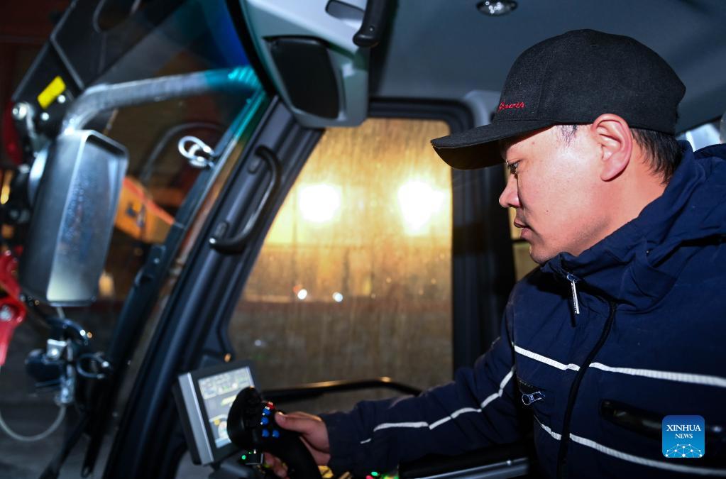 Gao Wenbin drives a groomer at Changbai Mountain Ski Resort in northeast China's Jilin Province, Nov. 19, 2021. At Changbai Mountains Ski Resort, snow-making professionals as snow cannon operators, groomer drivers and snow track patrols work in cold nights in order to secure high quality of snow for visitors. As the 2022 Beijing Olympics approaches and the Chinese government encourages 300 million people to be involved in winter sports, ski resorts in China are seeing increasing visitors and providing more diversed job opportunities. (Xinhua/Yan Linyun)