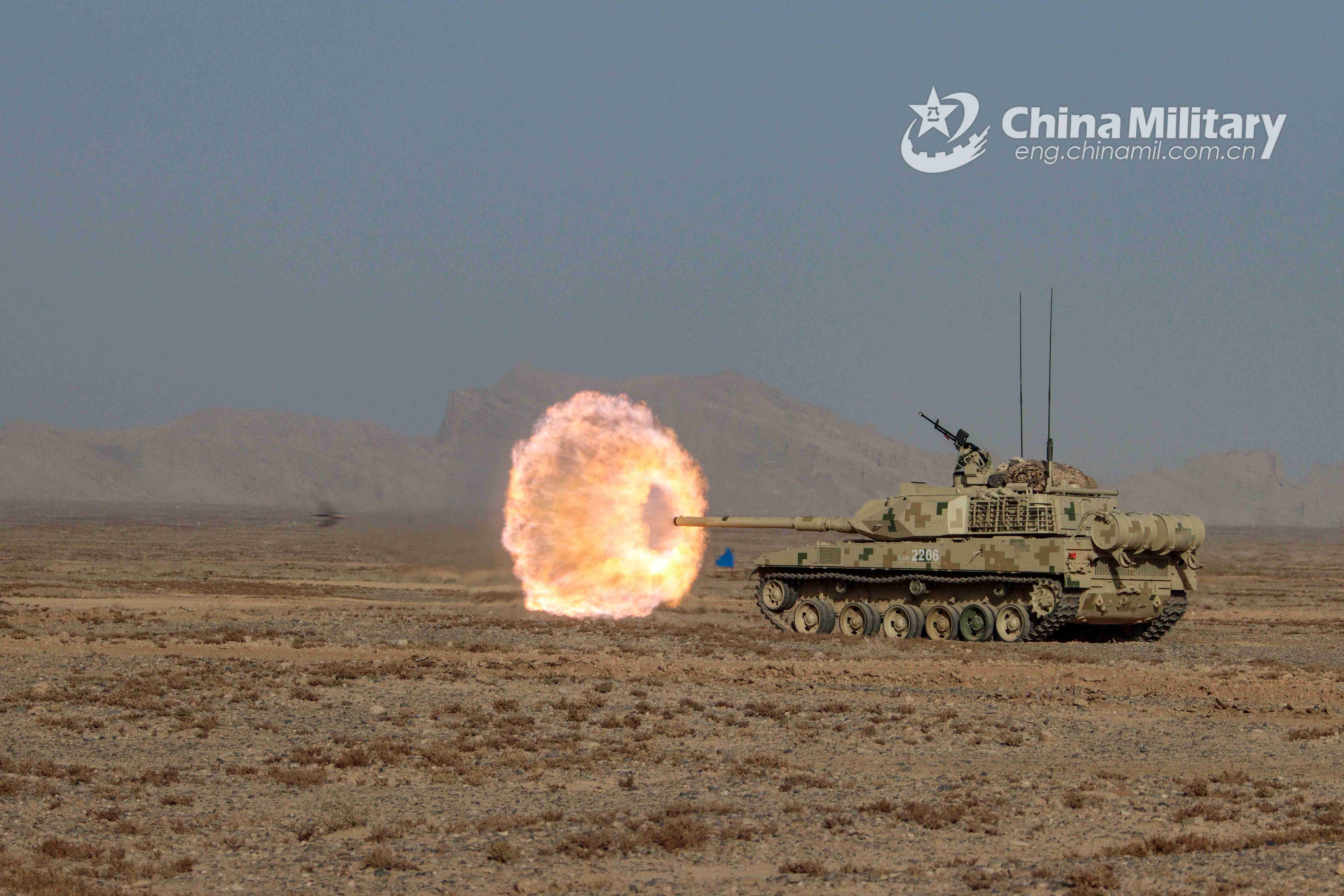 A main battle tank attached to a combined arms regiment under the PLA Nanjiang Military Command fires at a simulated enemy during a live-fire training exercise in late October, 2021. (eng.chinamil.com.cn/Photo by Kong Lingzhi and Li Jinqiao)
