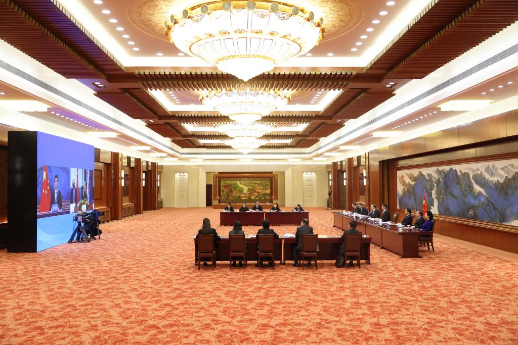 BEIJING, Nov. 24 (Xinhua) -- Li Zhanshu, chairman of the National People's Congress (NPC) Standing Committee, met with Anita Demetriou, President of the House of Representatives of Cyprus, via video link in Beijing on Wednesday.