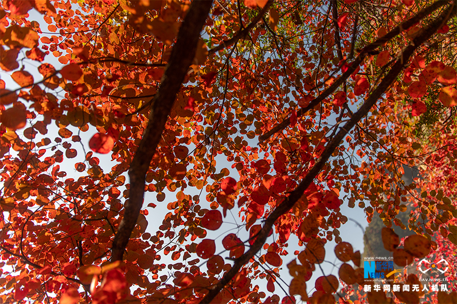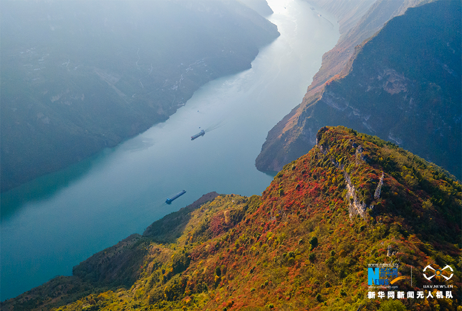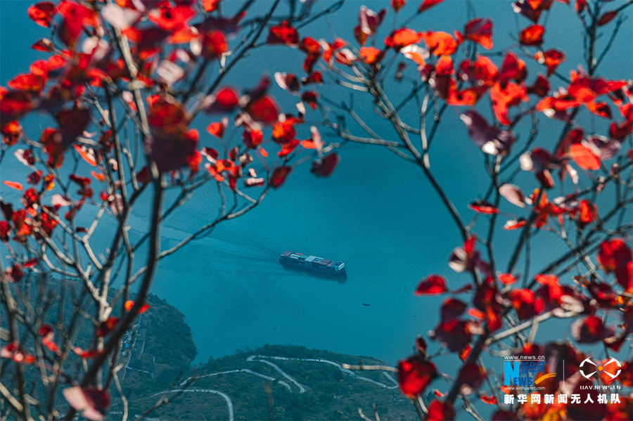 Aerial photo shows scenery of red leaves decorating the Three Gorges in early winter. (Photo by Wang Changzheng/Xinhuanet)