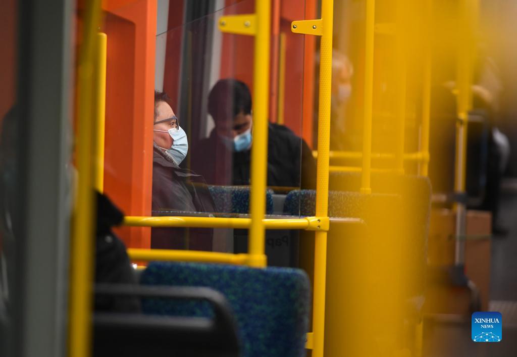 People wearing face masks take a subway in Frankfurt, Germany, on Nov. 25, 2021. The total number of COVID-19 deaths in Germany has climbed to 100,119, as 351 fatal cases were recorded within the last 24 hours, the Robert Koch Institute (RKI) announced on Thursday. (Xinhua/Lu Yang)
