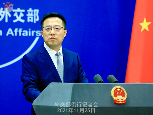 Spokesperson Zhao Lijian made the remarks at a press briefing regarding U.S. Under Secretary of State Jose W. Fernandez's allegations against China when talking about the outcomes of the so-called U.S.-Taiwan Economic Prosperity Partnership Dialogue.