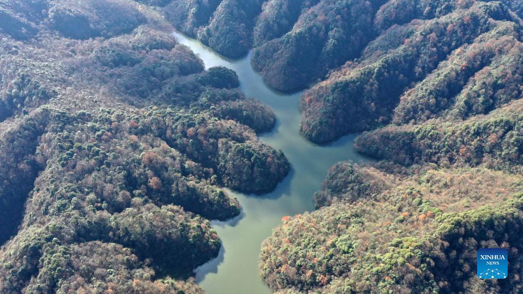 Aerial photo taken on Nov. 25, 2021 shows scenery of Kuankuoshui national nature reserve in Suiyang County, southwest China's Guizhou Province. (Xinhua/Yang Ying)