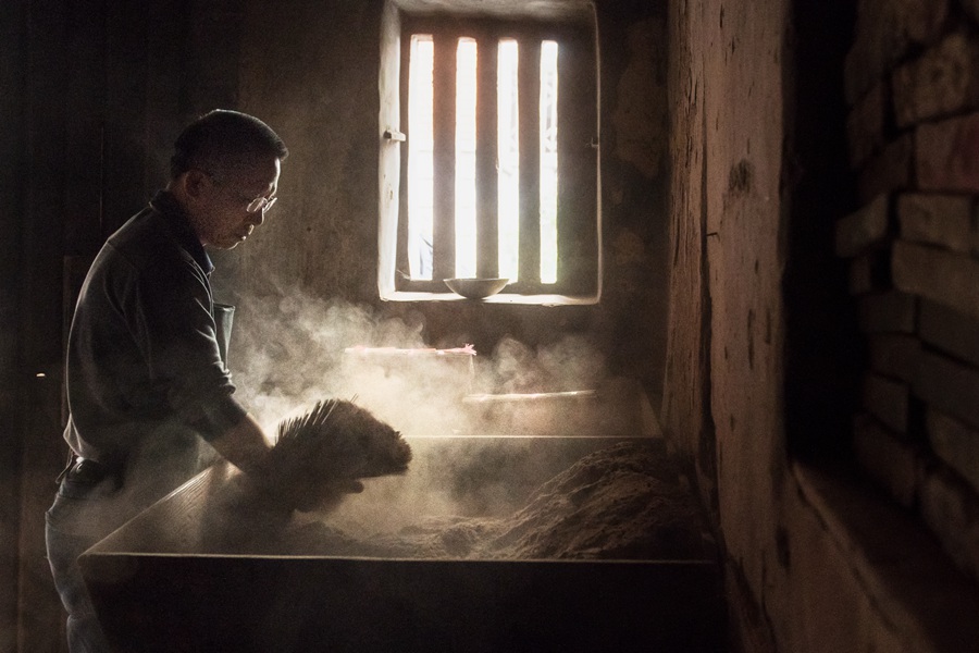 Pu Lianggong produces materials for making incense in Yongchun county, Quanzhou city of southeast China’s Fujian Province. (Photo/Zhang Wenqing)