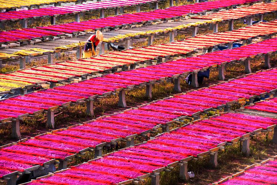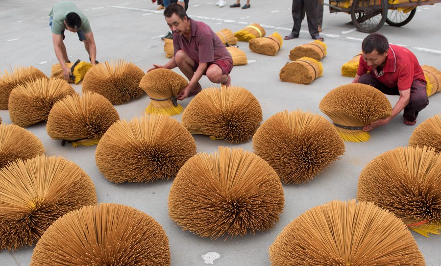 Workers dry incense sticks in Yongchun county, Quanzhou city of southeast China’s Fujian Province. (Photo/Kang Qingping)