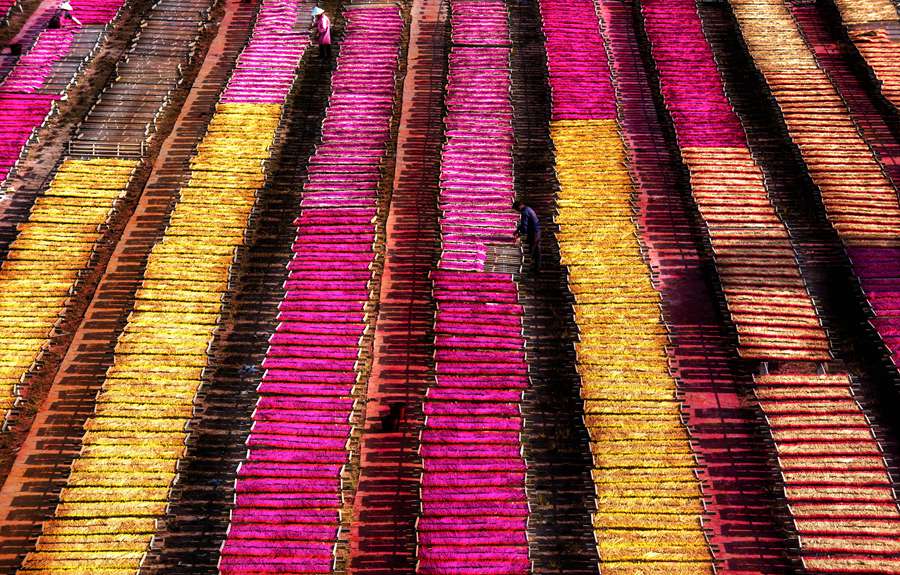 Workers dry incense sticks in Yongchun county, Quanzhou city of southeast China’s Fujian Province. (Photo/Zhang Wenqing)