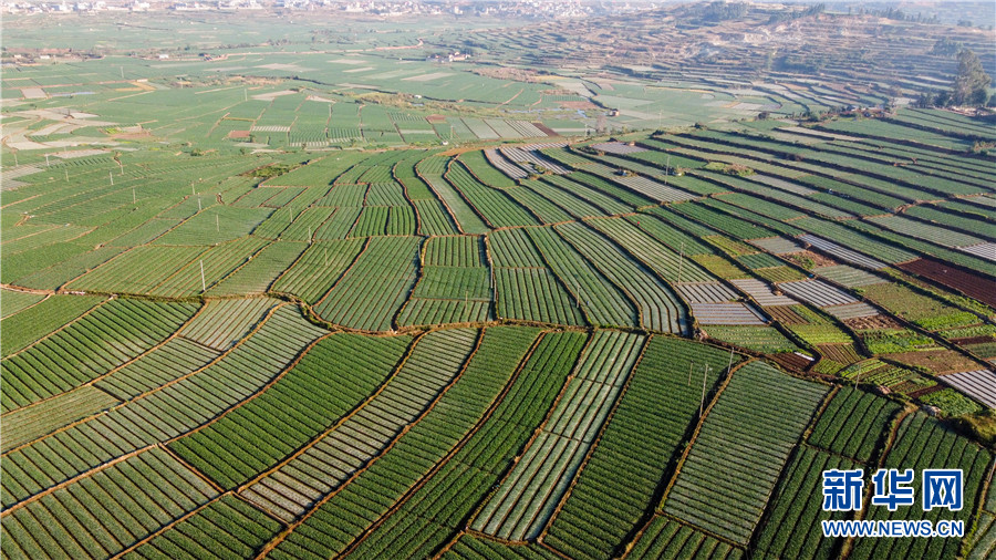 Aerial photo shows onion fields in Miandian Town of Jianshui County, Honghe Hani and Yi Autonomous Prefecture, southwest China's Yunnan Province. (Photo by Yang Junpeng/Xinhuanet)