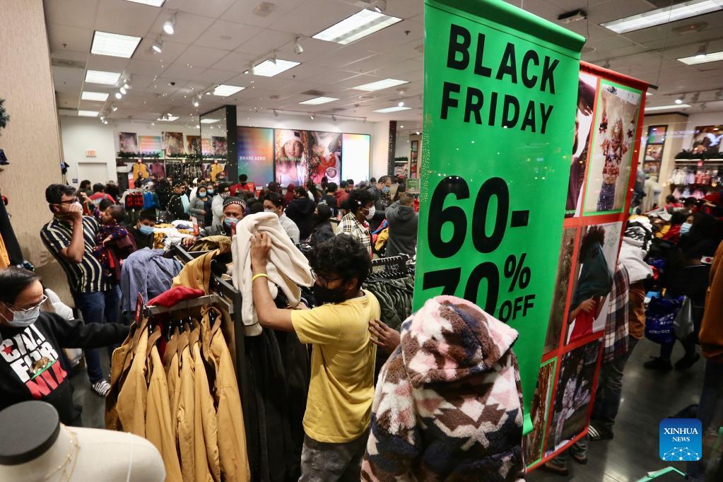 Black Friday shoppers shop at the Citadel Outlets in Los Angeles, California, the United States, on the night of Nov. 25, 2021. (Xinhua)