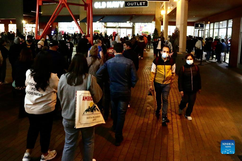Black Friday shoppers wait to enter stores at the Citadel Outlets in Los Angeles, California, the United States, on the night of Nov. 25, 2021. (Xinhua)