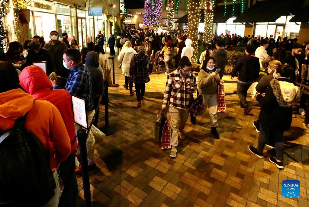 Black Friday shoppers wait to enter stores at the Citadel Outlets in Los Angeles, California, the United States, on the night of Nov. 25, 2021. (Xinhua)