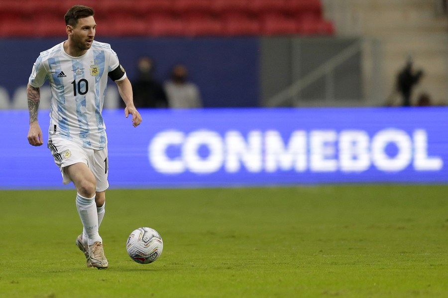 Lionel Messi of Argentina competes during the 2021 Copa America Semifinals football match between Argentina and Colombia in Brasilia, Brazil, on July 6, 2021. (Photo by Lucio Tavora/Xinhua)