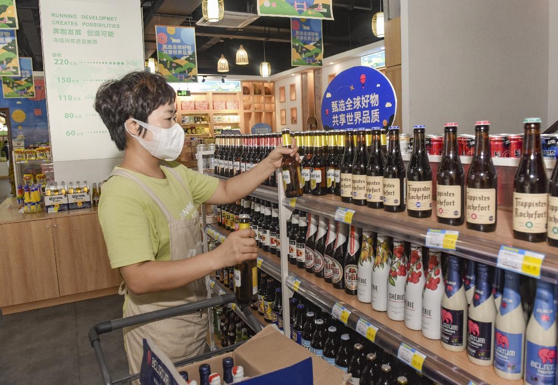 Products from countries along the routes of the Belt and Road Initiative are on sale at the imports zone of a fruit market in Jinhua city, east China’s Zhejiang province, August 18, 2021. (People’s Daily Online/Li Jianlin)