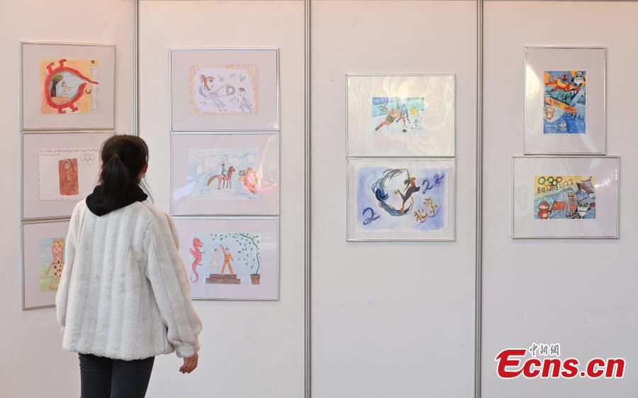 An exhibition, showcasing more than 100 artworks created by Chinese and Greek youth, is held at the Jintai Art Museum in Beijing, capital of China, Dec. 1, 2021. (Photo: China News Service/Hou Yu)