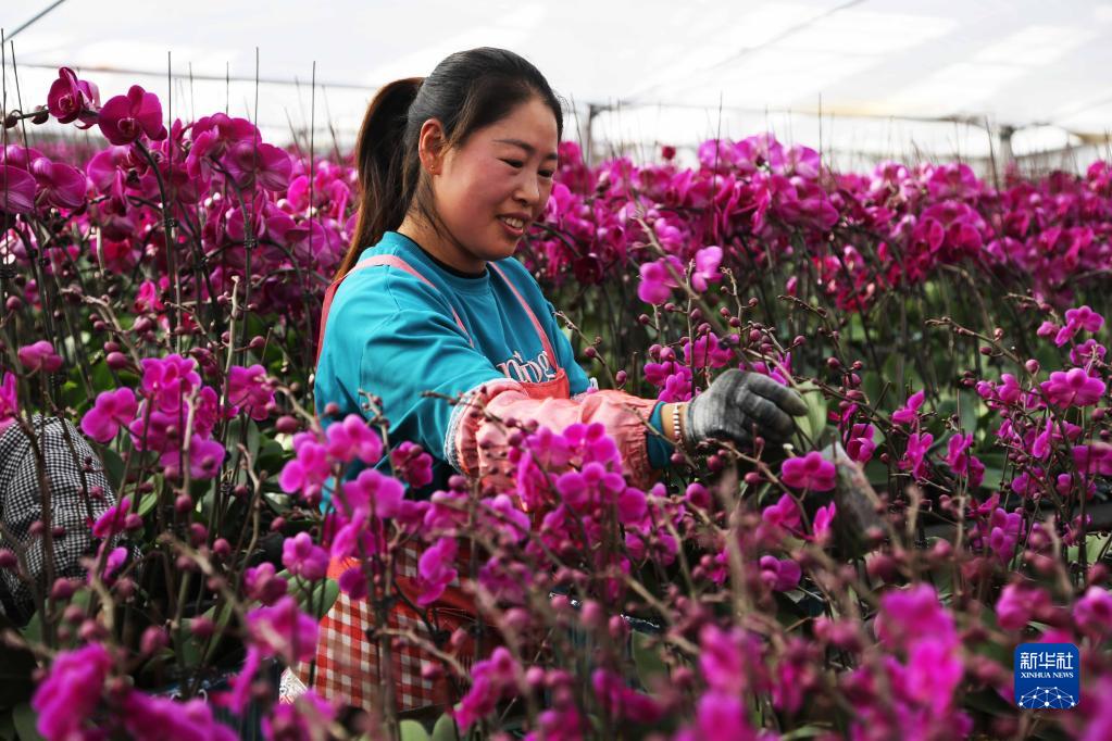 Phalaenopsis flowers are in full blossom these days in flower production bases in Lintao County of Dingxi City, northwest China's Gansu Province. Gardeners are busy to manage, package and transport the flowers for market supply. Recent years have witnessed fast development of flower production in Lintao County. Local authorities have actively introduced flower enterprises into the county to instruct local farmers to grow flowers according to local conditions. Years of hard work have not only increased local farmers' income, but also boosted local economy. (Xinhua/Wang Kexian)