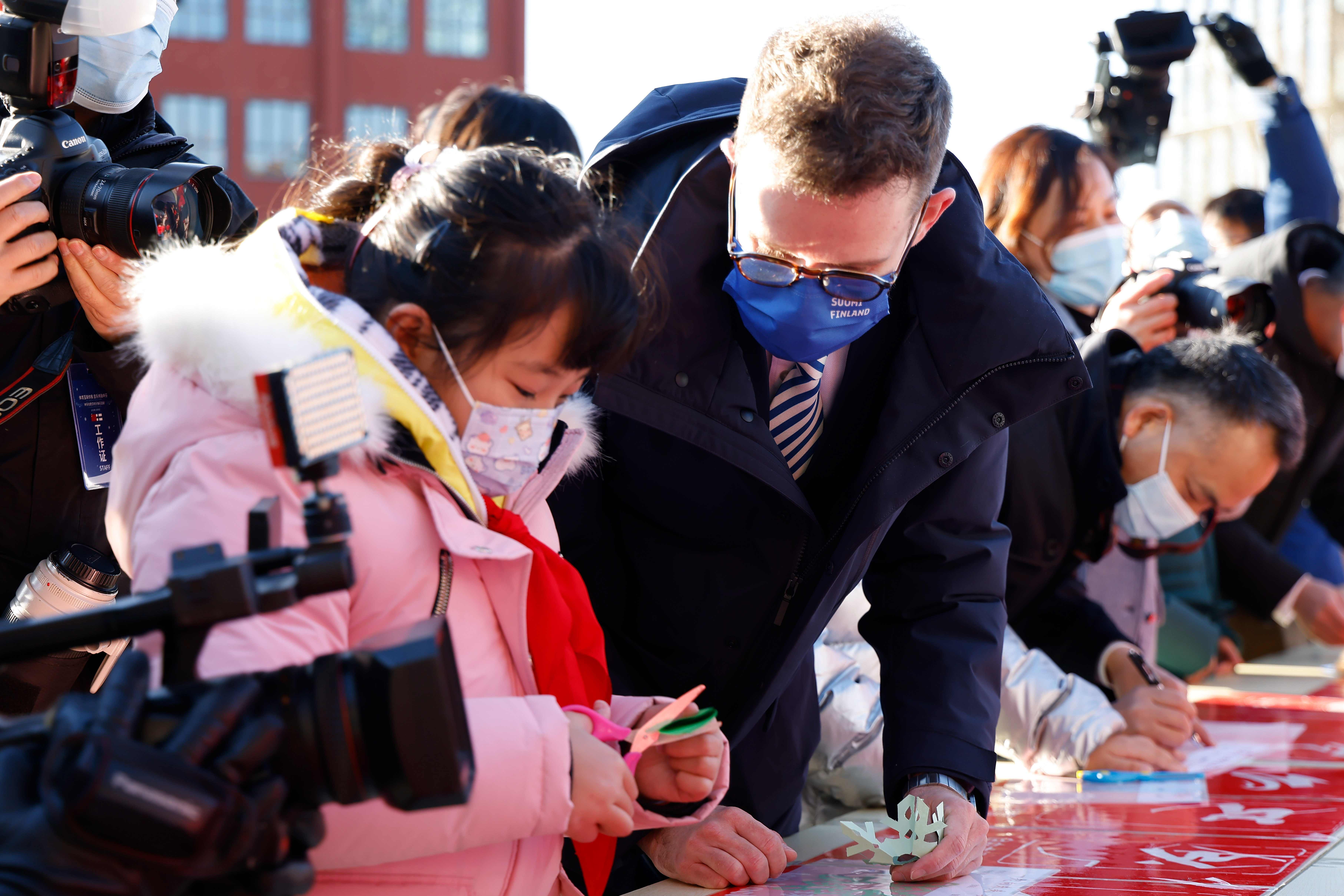 The event was organized by the Embassy of Finland in Beijing, the Shijingshan District People’s Government of Beijing Municipality, the Team Finland network, and the Shougang Group and was held at the Shougang Park, the only snow event venue located in the downtown area of the city for the 2022 Beijing Winter Olympics. Apart from the music flash mob, participants also cut out paper snowflakes with a message of hope for the forthcoming 2022 Winter Olympics and Paralympics.