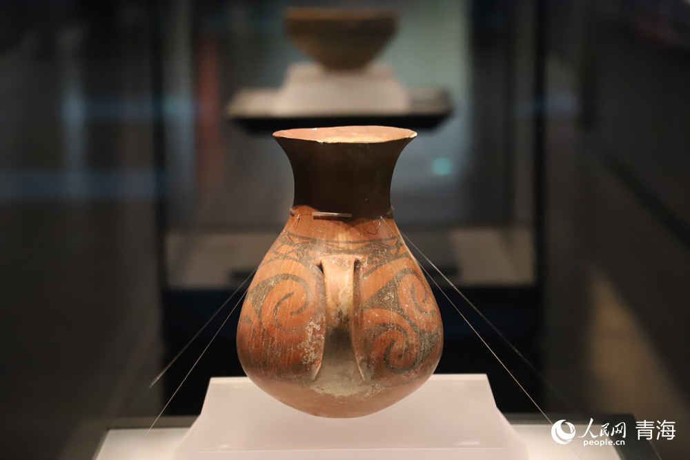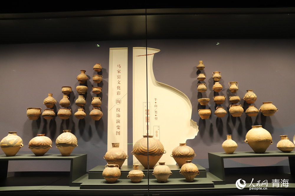 Photo shows an exhibition booth of prehistoric painted pottery wares on display at Qinghai Provincial Museum. (People's Daily Online/Yang Qihong)