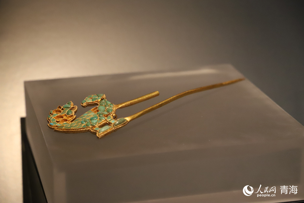 Photo shows a phoenix hairpin inlaid with kallaites found in the Xuewei No. 1 Tomb, which is part of the Reshui Tombs in Dulan county. (People's Daily Online/Yang Qihong)