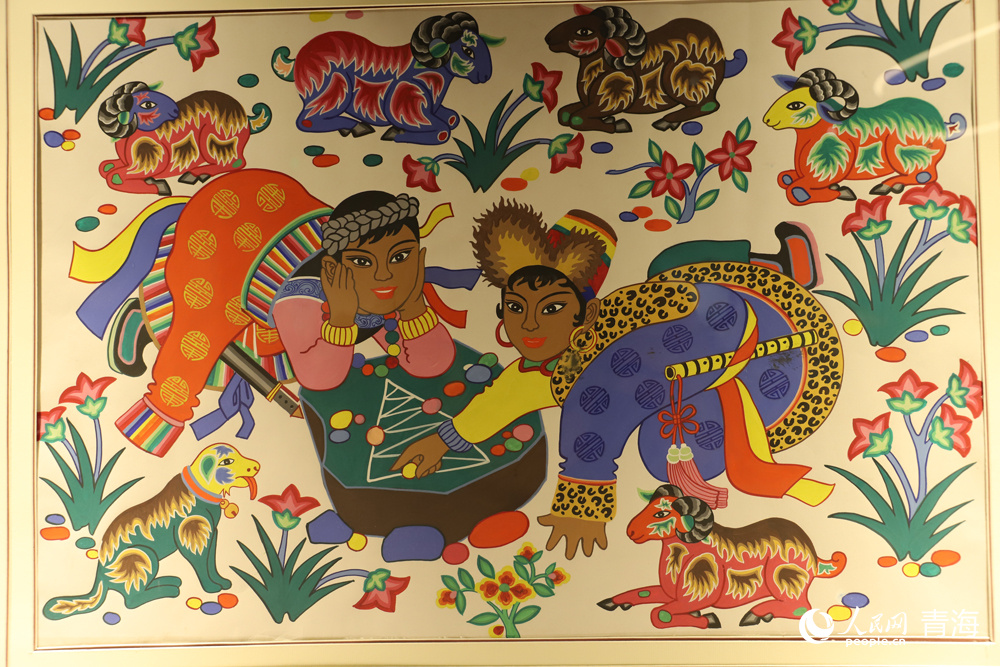 Photo shows a farmers’ painting named “Playing Tibetan Chess.” (People's Daily Online/Yang Qihong)