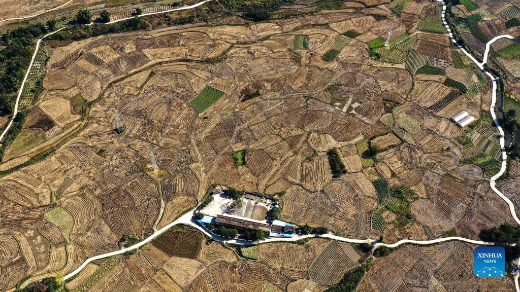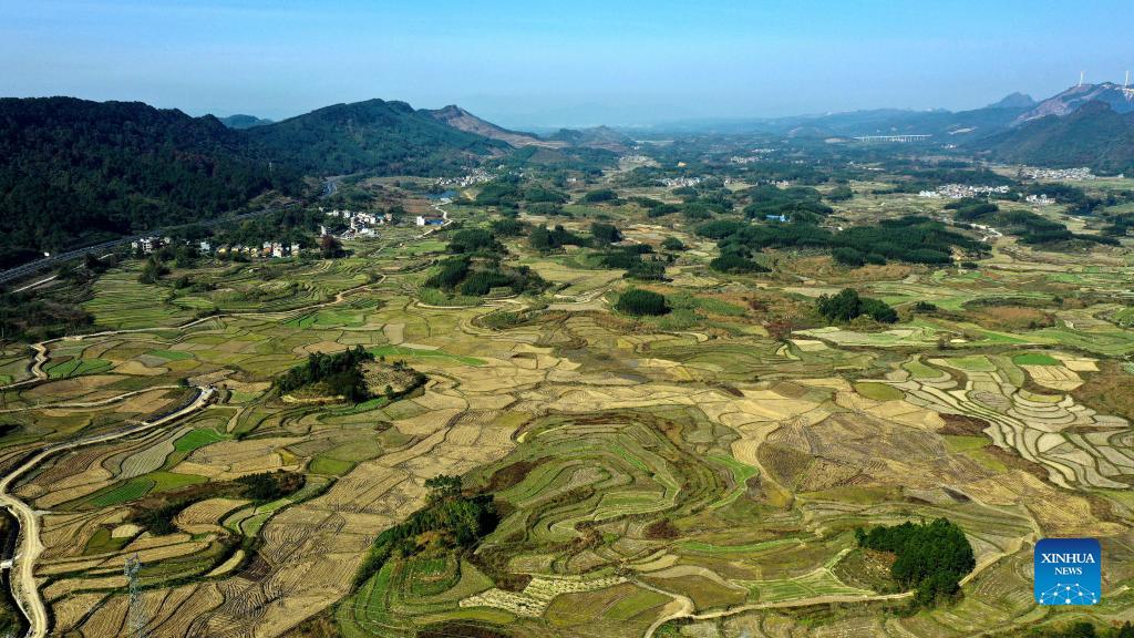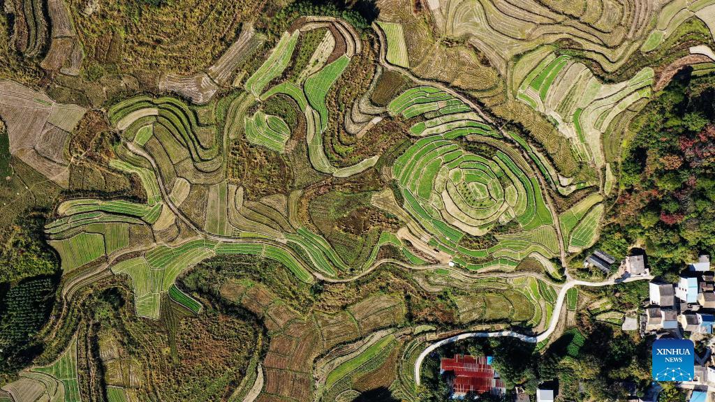 Aerial photo taken on Dec. 2, 2021 shows the scenery of Xingui Village, Tantou Township, Rong'an County, south China's Guangxi Zhuang Autonomous Region. (Xinhua/Zhang Ailin)