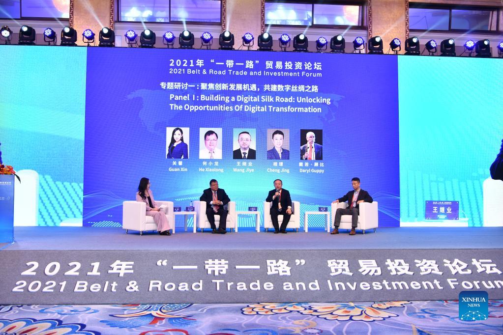 Guests attend a panel at the 2021 Belt &Road Trade and Investment Forum in Beijing, capital of China, Dec. 2, 2021. (Xinhua/Li Xin)