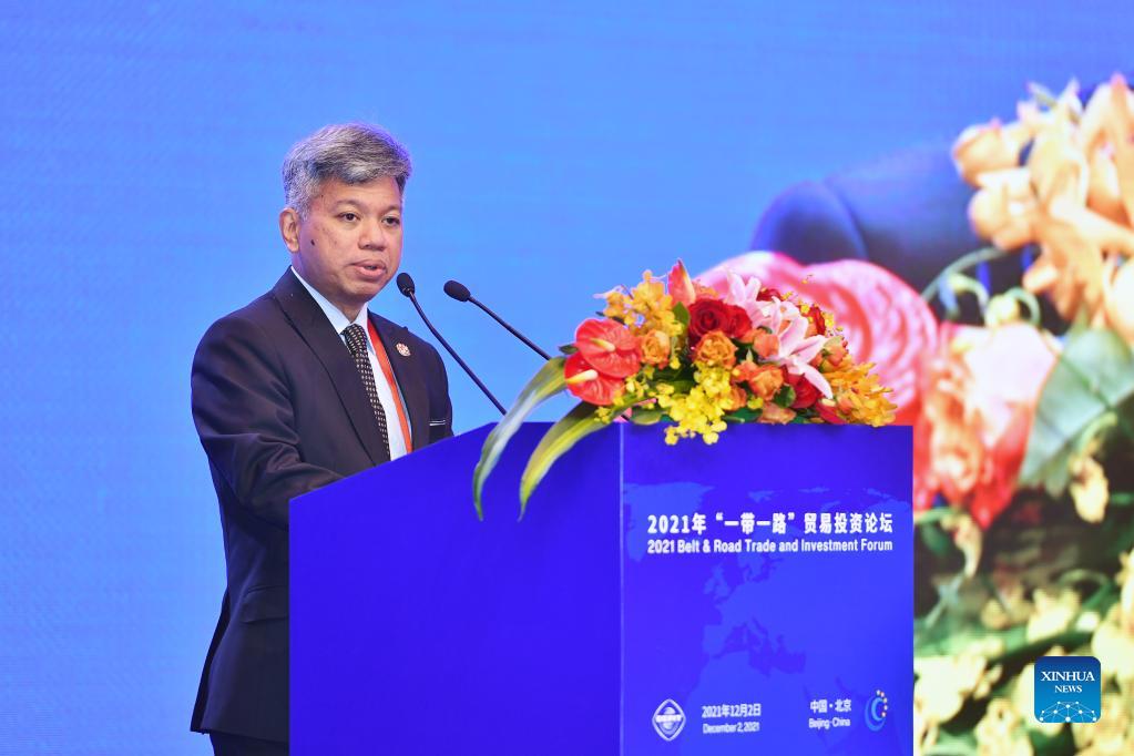 Raja Dato' Nushirwan Zainal Abidin, Ambassador of Malaysia to China, addresses the 2021 Belt &Road Trade and Investment Forum in Beijing, capital of China, Dec. 2, 2021. (Xinhua/Li Xin)