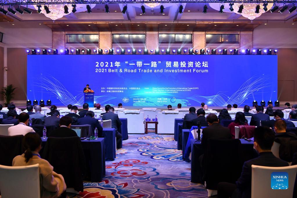 Photo taken on Dec. 2, 2021 shows a view of the 2021 Belt &Road Trade and Investment Forum in Beijing, capital of China. (Xinhua/Li Xin)