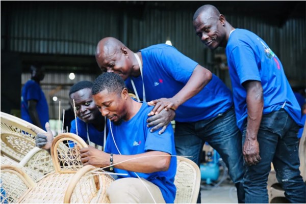 Young people in Ghana learn high value-added Chinese techniques for weaving furniture with bamboo and rattan at a China-aided training program. (Photo/Website of China International Development Cooperation Agency)