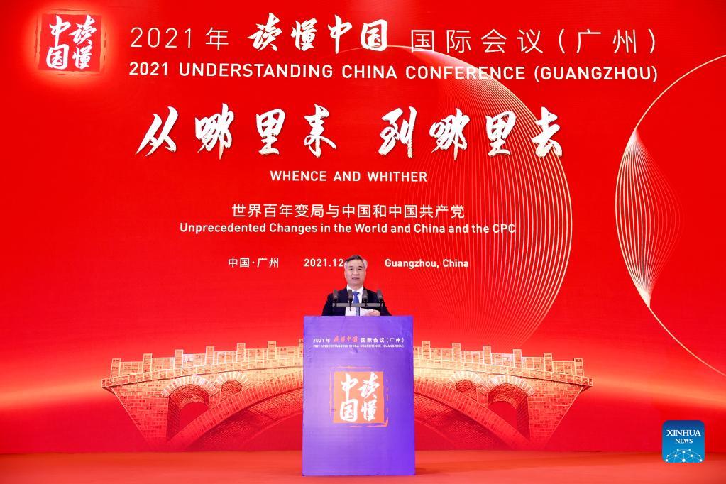 Li Xi, a member of the Political Bureau of the Communist Party of China (CPC) Central Committee and secretary of the CPC Guangdong Provincial Committee, delivers a speech at the 2021 Understanding China Conference (Guangzhou), in Guangzhou of south China's Guangdong Province, Dec. 2, 2021. (Xinhua/Liu Bin)
