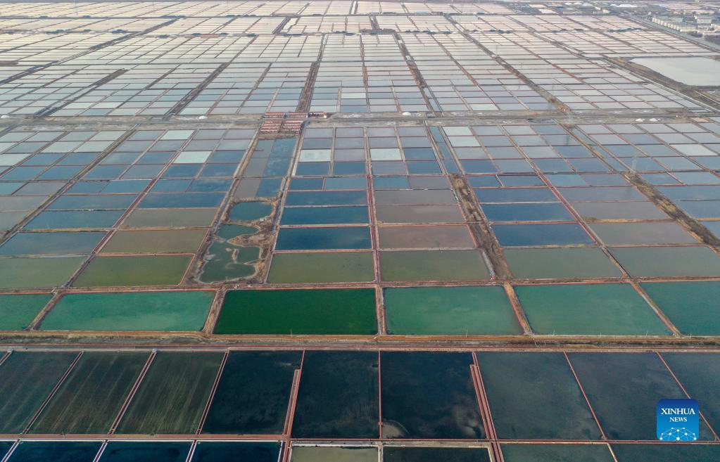 Aerial photo taken on Dec. 1, 2021 shows a view of the salt farms in Yangkou Township, Shouguang City of east China's Shandong Province. (Xinhua/Zhu Zheng)