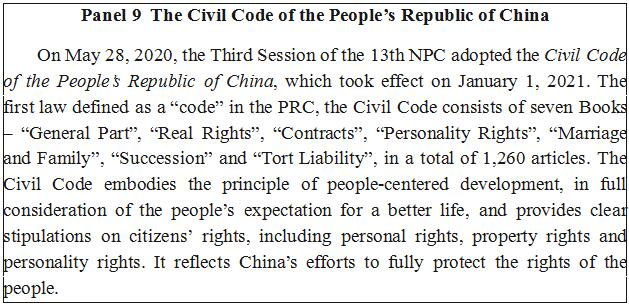The Chinese people can see their rights being steadily enriched and improved. After the founding of the PRC in 1949, they began to seek subsistence and development on the basis of political and economic equality; after the launch of reform and opening up in 1978, they began to pursue both material and cultural prosperity; in this new era, China has eliminated absolute poverty, completed the building of a moderately prosperous society in all respects, made great strides towards common prosperity, and achieved remarkable successes in the fight against Covid-19. Throughout this course, the rights enjoyed by the Chinese people have expanded in scope and depth, and steady progress has been made in achieving the free and well-rounded development of the individual.