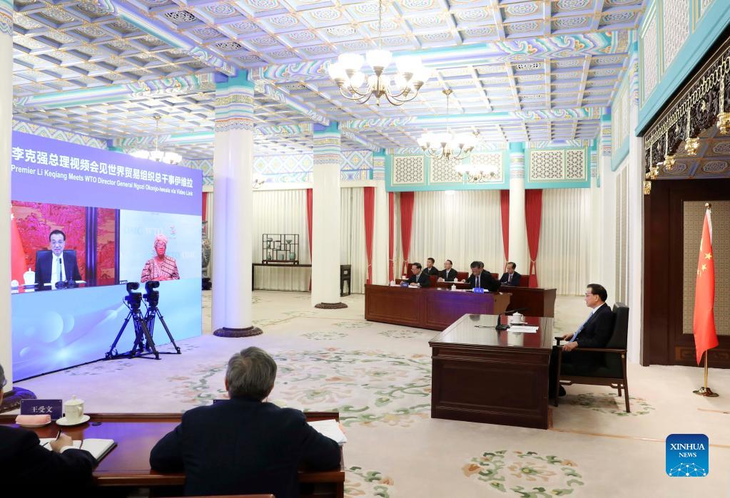 Chinese Premier meets with WTO director-general via video link