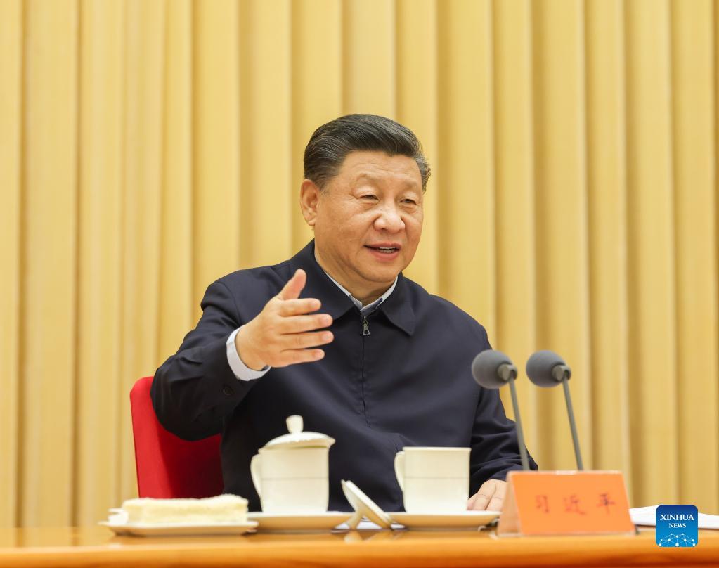 Chinese President Xi Jinping, also general secretary of the Communist Party of China Central Committee and chairman of the Central Military Commission, addresses a national conference on work related to religious affairs in Beijing, capital of China. The conference was held from Friday to Saturday. (Xinhua/Ding Haitao)