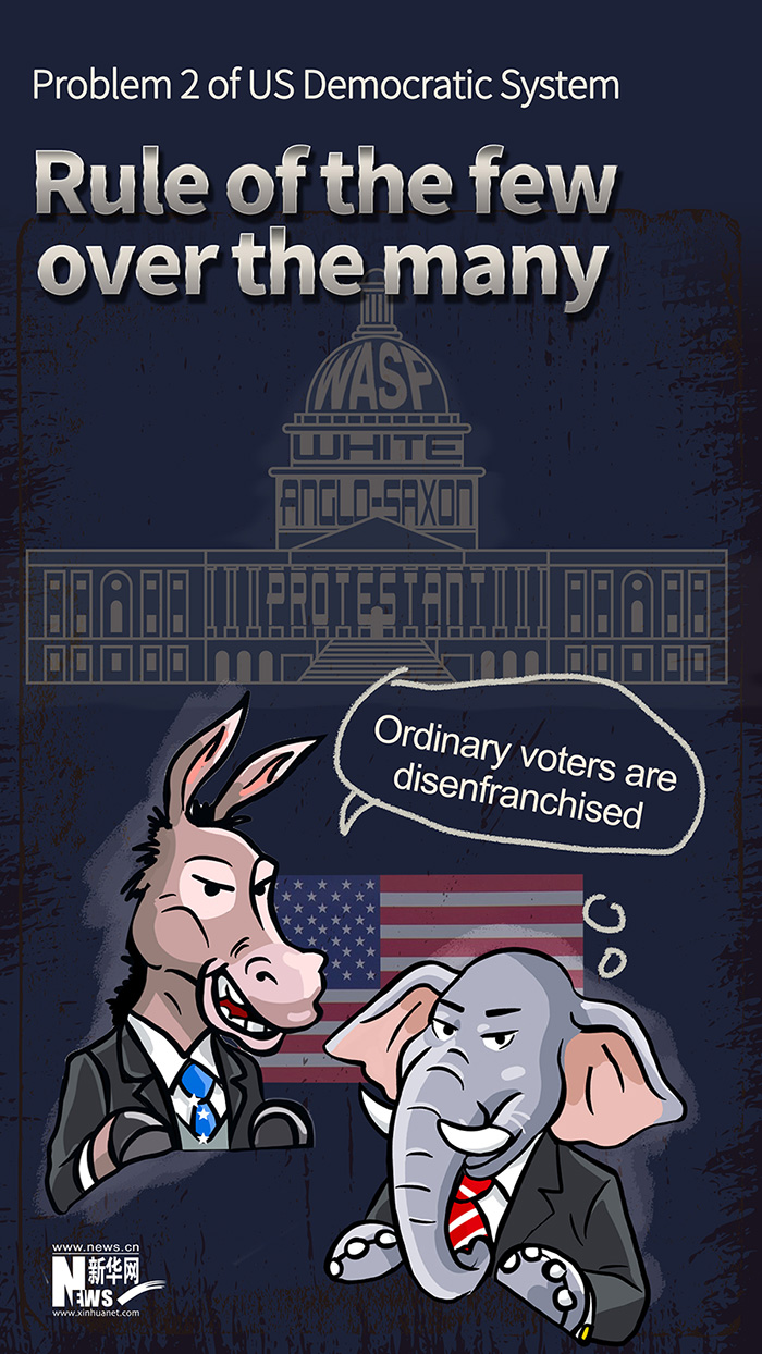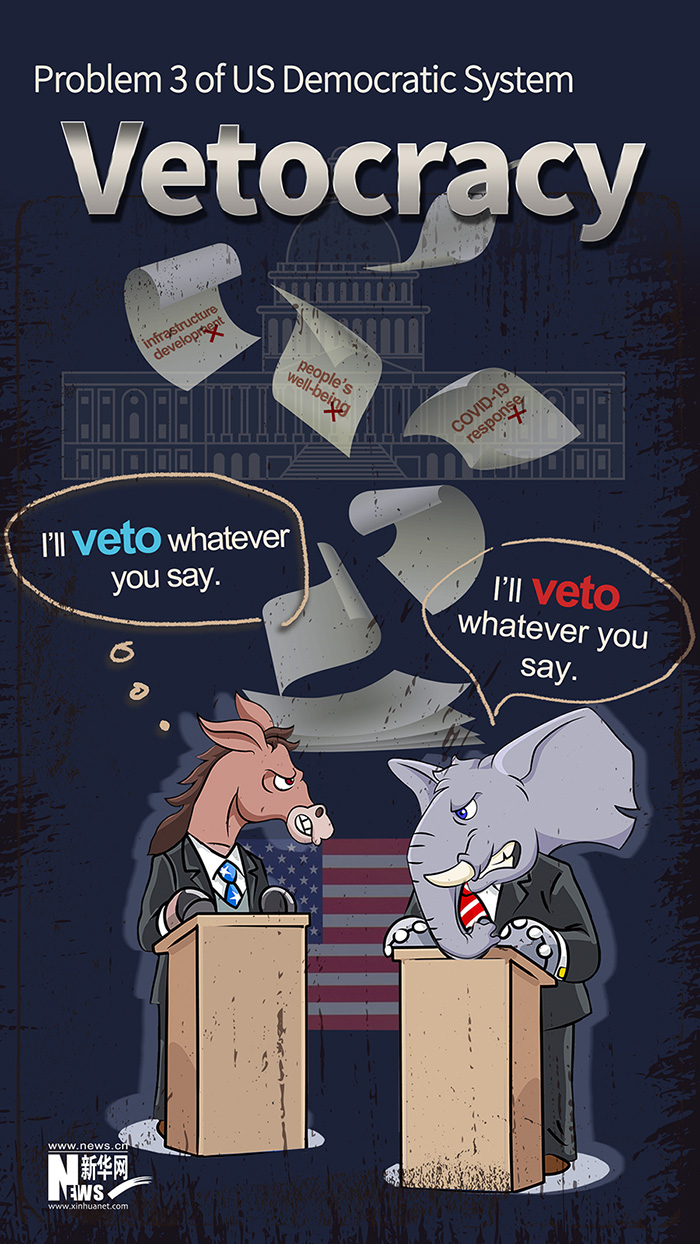 The report elaborated on the alienation and the malaises of democracy in the United States from three aspects: the system fraught with deep-seated problems, messy and chaotic practices of democracy, and disastrous consequences of the U.S. export of its brand of democracy.
