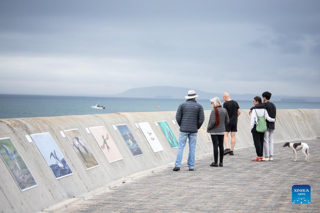 People enjoy photos of wildlife on the seaside in Cape Town, South Africa, Dec. 5, 2021. South Africa has entered the fourth wave of the pandemic with the new variant at the center of the rise in cases, Health Minister Joe Phaahla said at a briefing on Friday. (Xinhua/Lyu Tianran)