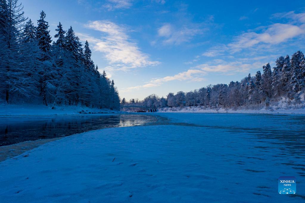 Photo taken on Dec. 5, 2021 shows the winter landscape in Ogre, Latvia. (Photo by Edijs Palens/Xinhua)