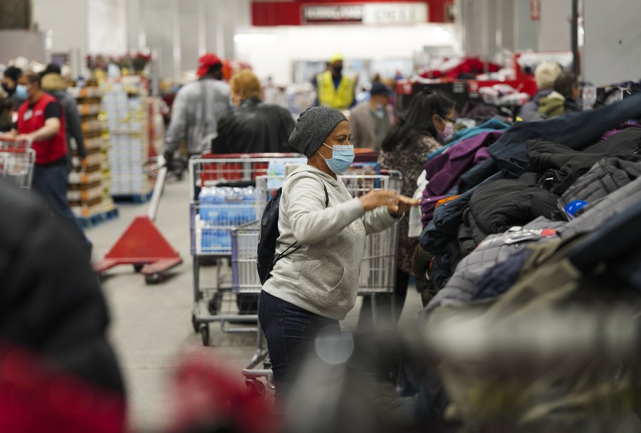 People shop at a COSTCO store in New York, the United States, Dec. 2, 2021. (Xinhua/Wang Ying)