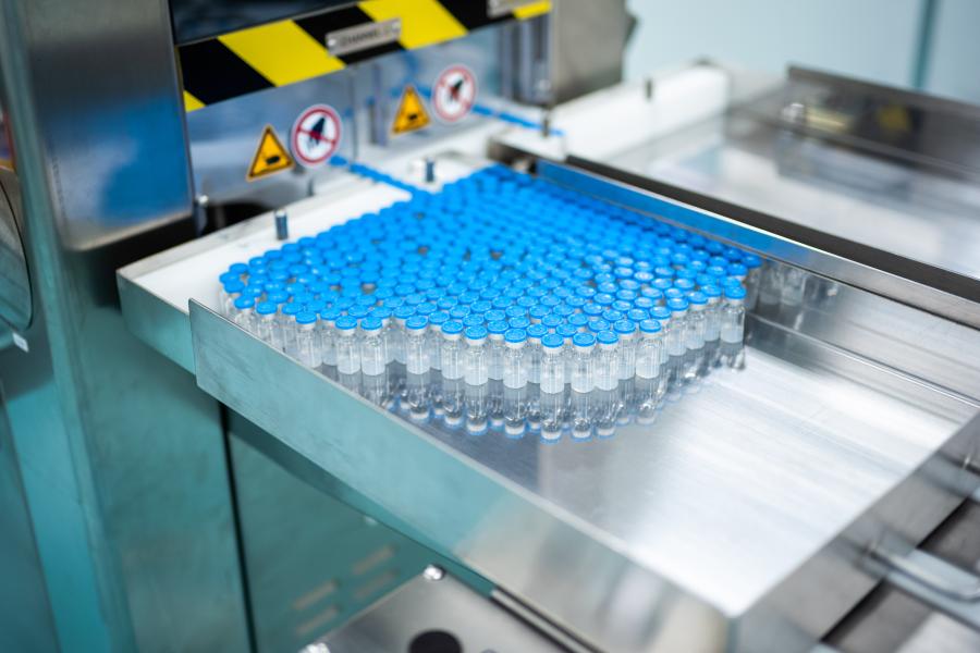 Vials are seen during the fill and finish operation for Sinovac vaccines at Malaysian pharmaceutical company Pharmaniaga on the outskirts of Kuala Lumpur, Malaysia, Oct. 5, 2021. (Xinhua/Zhu Wei)