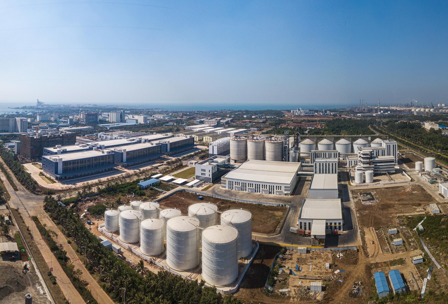 Aerial panoramic photo taken on Dec. 5, 2021 shows the Yangpu Bonded Port Area in Yangpu, south China's Hainan Province. (Xinhua/Pu Xiaoxu)