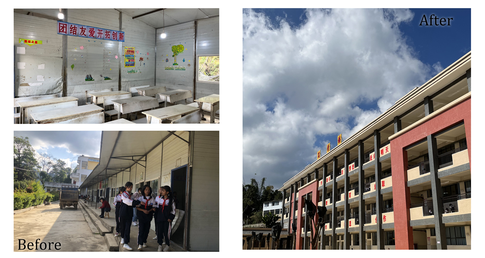 Until last July, Wang's daughter, together with some 400 other pupils, were still studying in improvised classrooms that had been pieced together with composite boards. As the structure was not entirely sealed, it was particularly susceptible to wind and water.