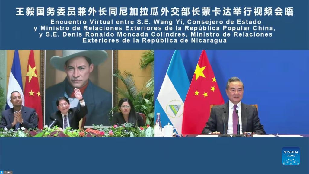 In a virtual meeting with Nicaraguan Foreign Minister Denis Moncada, Wang made four proposals on developing bilateral ties: firmly upholding the one-China principle, blueprinting future cooperation, cementing the foundation of popular support, and firmly supporting each other.