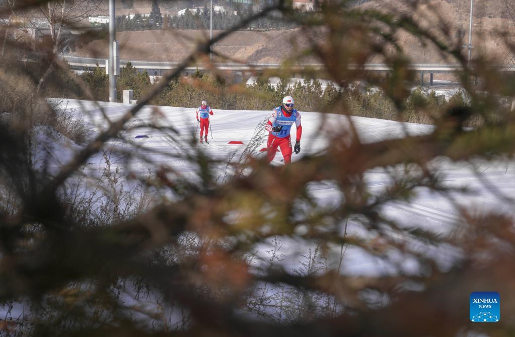 Athletes of Chinese national cross-country skiing team take part in a training session preparing for the Beijing 2022 Olympic Winter Games in Zhangjiakou City, north China's Hebei Province, on Dec. 9, 2021. (Xinhua/Hu Huhu)