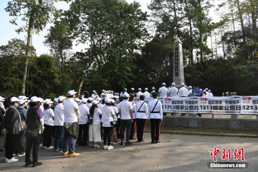 Hong Kong citizens gathered at the Wu Kau Tang monument to hold a commemoration for martyrs who died in their resistance against the Japanese invasion of Hong Kong, on Dec 12, 2021, which marks China's eighth National Memorial Day for the Nanjing Massacre Victims. (China News Service/Li Zhihua)