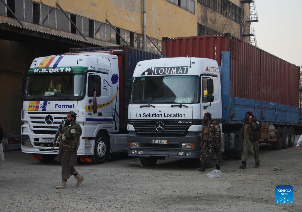 The second batch of winter supplies donated by China arrives in Kabul, capital of Afghanistan, Dec. 13, 2021. (Photo by Saifurahman Safi/Xinhua)