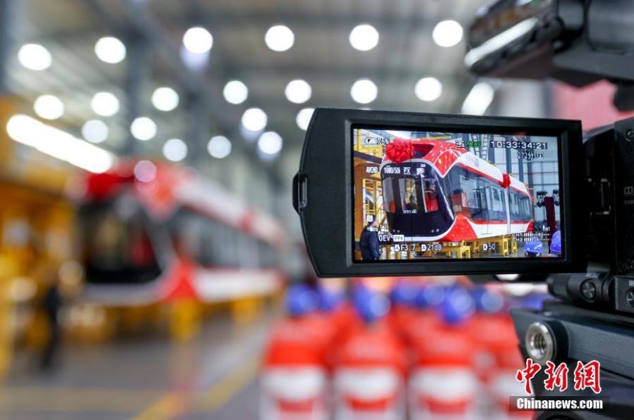 Photo shows the Xingguo maglev sky train taken by a camera at the ceremony in Jiangxia District in Wuhan, central China's Hubei Province, Dec. 14, 2021. (Photo: China News Service/Zhang Chang)