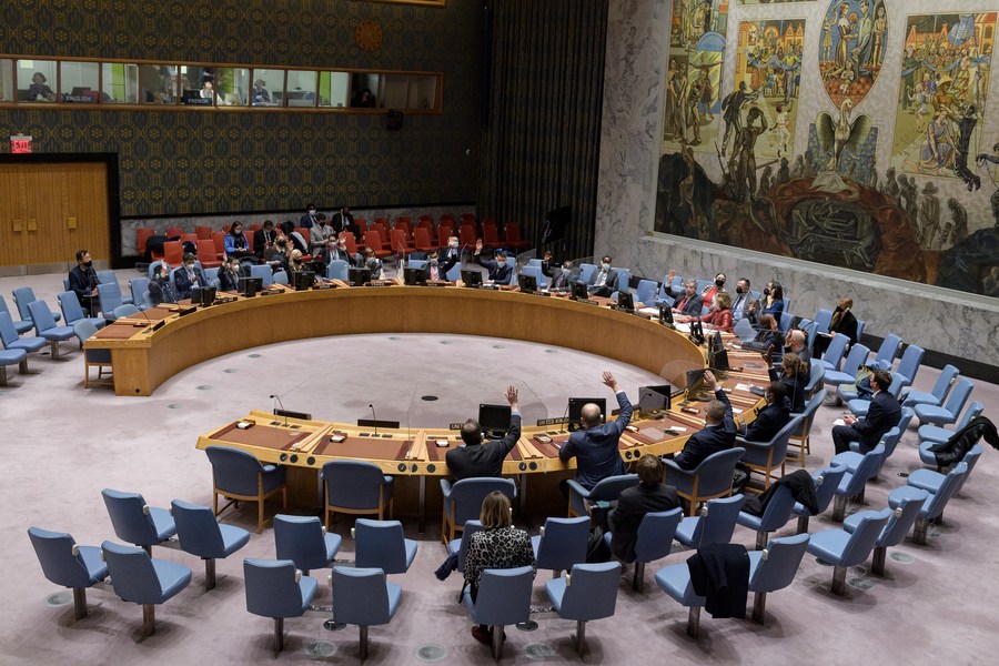 Photo taken on Nov. 15, 2021 shows a scene at a Security Council meeting on the situation in Sudan and South Sudan at the UN headquarters in New York. (Manuel Elias/UN Photo/Handout via Xinhua)