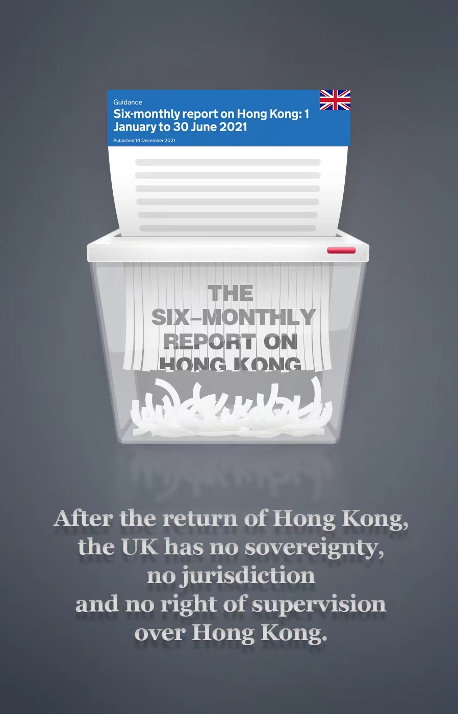 Recently, the British government released its so-called Six-monthly Report on Hong Kong, maliciously stigmatizing the Law on Safeguarding National Security in the Hong Kong Special Administrative Region (HKSAR) and the electoral system of the HKSAR.