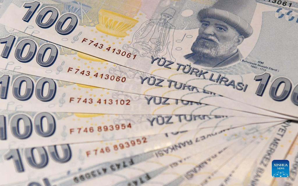 Photo taken on Dec. 17, 2021 shows some Turkish lira in Istanbul, Turkey. The Turkish currency crashed to a new record low of 17.16 per U.S. dollar on Friday after the central bank cut the interest rate again. (Xinhua/Shadati)