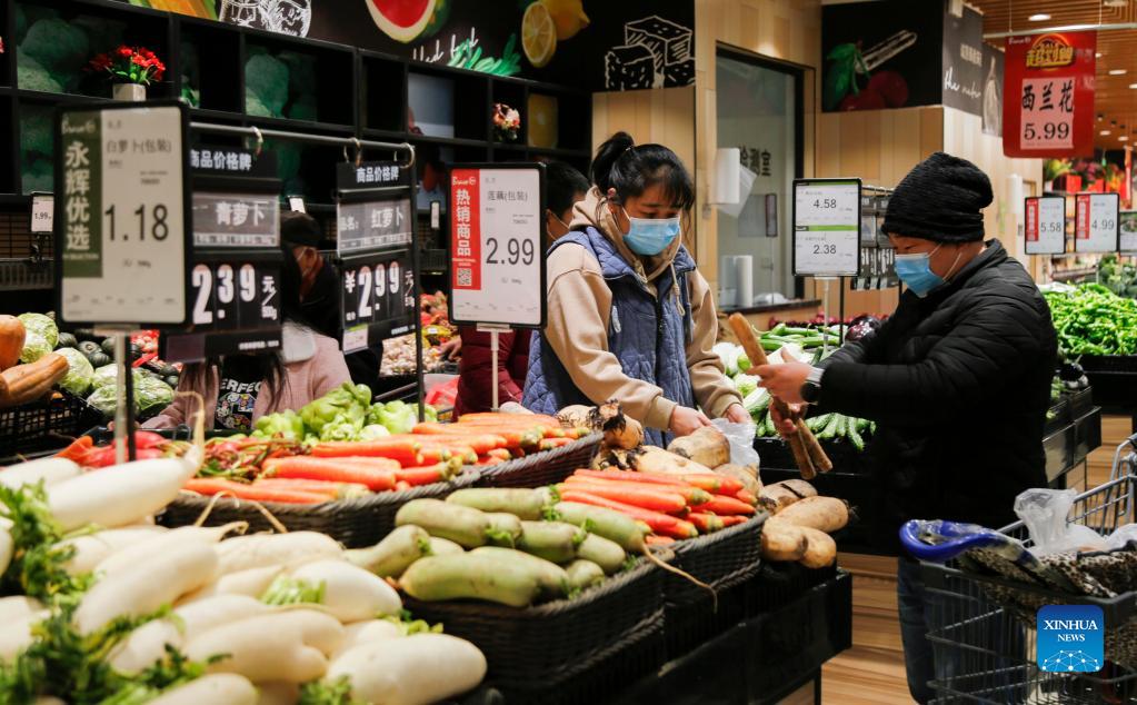 Residents purchase vegetable at a supermarket in Xi'an, northwest China's Shaanxi Province, Dec. 19, 2021. Xi'an authorities have been making continuous efforts to ensure the supply of vegetables amid the ongoing COVID-19 pandemic. (Photo by Wang Pengbo/Xinhua)