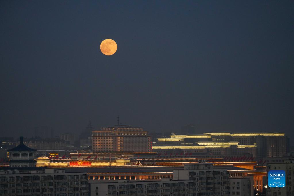 Photo taken on Dec. 19, 2021 shows the full moon in Beijing, capital of China. The last full moon in the year of 2021 appeared on Sunday, the sixteenth day on the eleventh month of the Chinese lunar calendar. (Xinhua/Du Juanjuan)